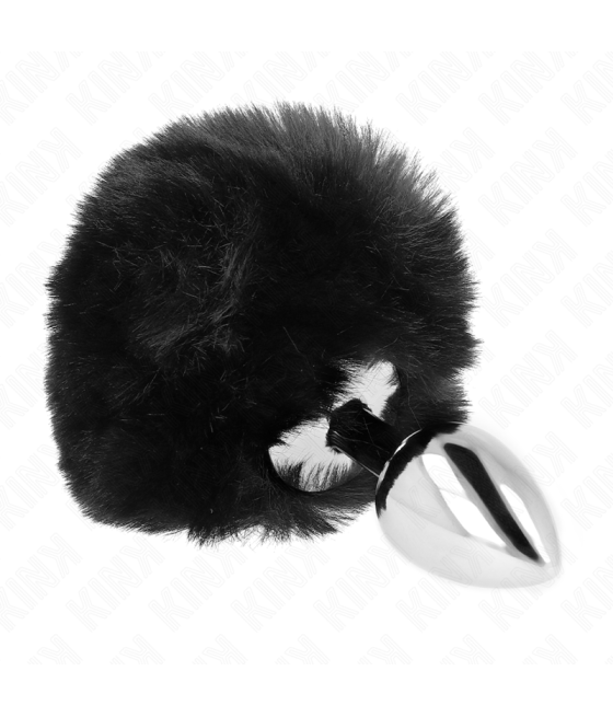 KINK - PLUG AÇO INOXIDÁVEL 7 x 3 CM COM CAUDA DE COELHO PRETA PELE FALSA 8 CM