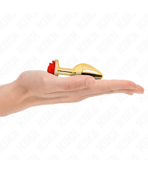 KINK - PLUG ANAL DE OURO ROSA COM ROSA VERMELHA S